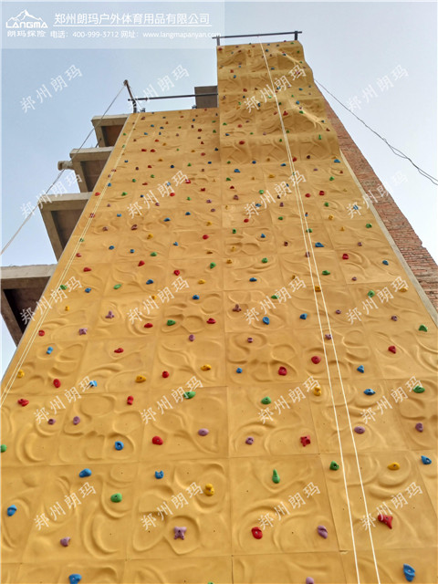 鄭州朗瑪應邀為駐馬店部隊建設依附式攀巖墻,攀巖墻整體高18米,寬5.4米,攀巖是依附在墻體上面的,墻面、后方鋼架主體、攀巖板、巖點等是攀巖墻的主要構成結構。攀巖墻是由120塊0.9平方米的巖板組裝而成,分為普通、難度2條賽道,能滿足各類人群的攀登,讓喜歡冒險的人們隨時體驗驚險、刺激。